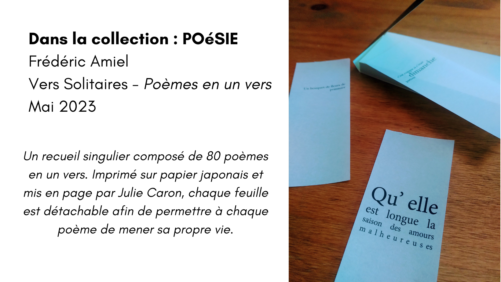 Nous publions en juin 2023 notre premier recueil de poésie. Un recueil de poèmes en un vers de Frédéric Amiel.